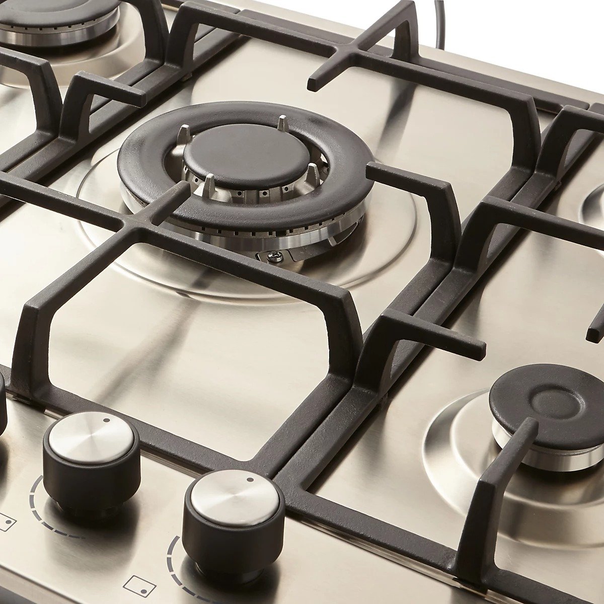 - This hob provides instant temperature control through rotary controls, the classic design works well with a range of kitchen styles. With 5 burners itโs perfect for larger kitchens and for those that like to entertain, the larger rings with supports are great for bigger pans and wokโs.