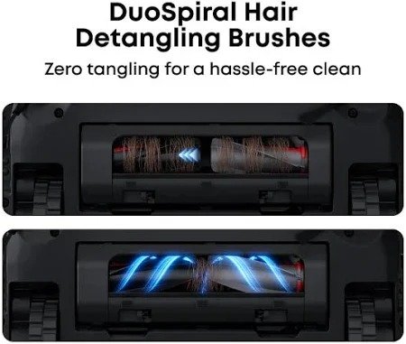 -  DuoSpiral Brushes prevent hair tangling and automatically empty collected debris