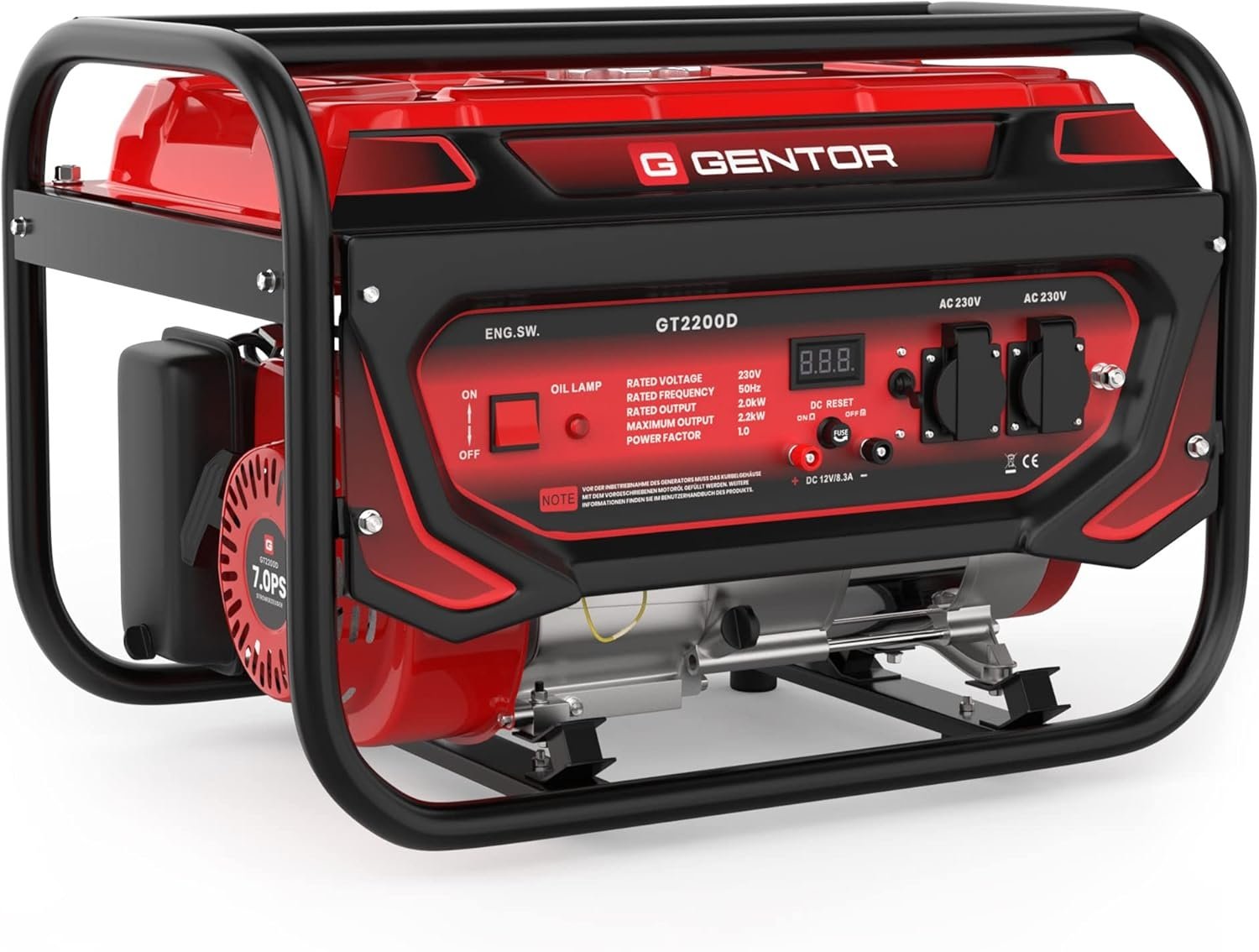 GENTOR Generatore Noodstroom, benzina, 2200 W, 7,0 pezzi, motore a 4 tempi, 2 x 230 V, 1 x 12 V, avviamento a strappo, per il campeggio