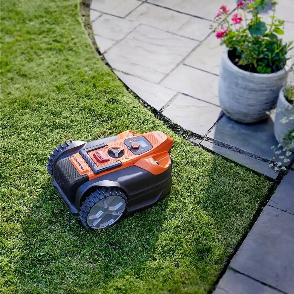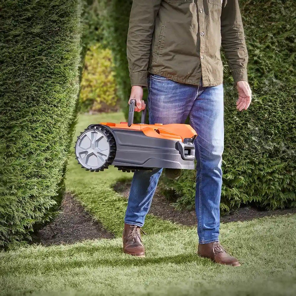 For OcuMow® 18 to perform at its best, your garden should have a clearly defined border around the perimeter of your lawn, such as dark mulch, paving or gravel, or a raised edge at least 6cm high. As with other robot mowers, a grass trimmer (not included) is needed to trim the lawn edges.