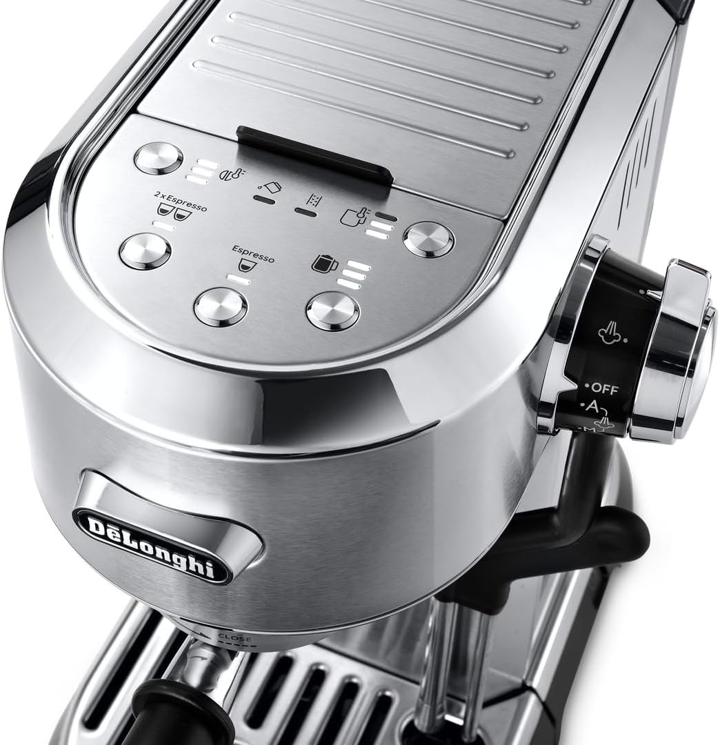 - DESIGN ICONICO E FACILITA’ DI UTILIZZO: Dedica Maestro Plus è dotata di un corpo robusto per migliorare la stabilità della macchina e il pannello di controllo intuitivo a 5 pulsanti fornisce un piacere semplice e immediato. Serbatoio dell’acqua removibile.