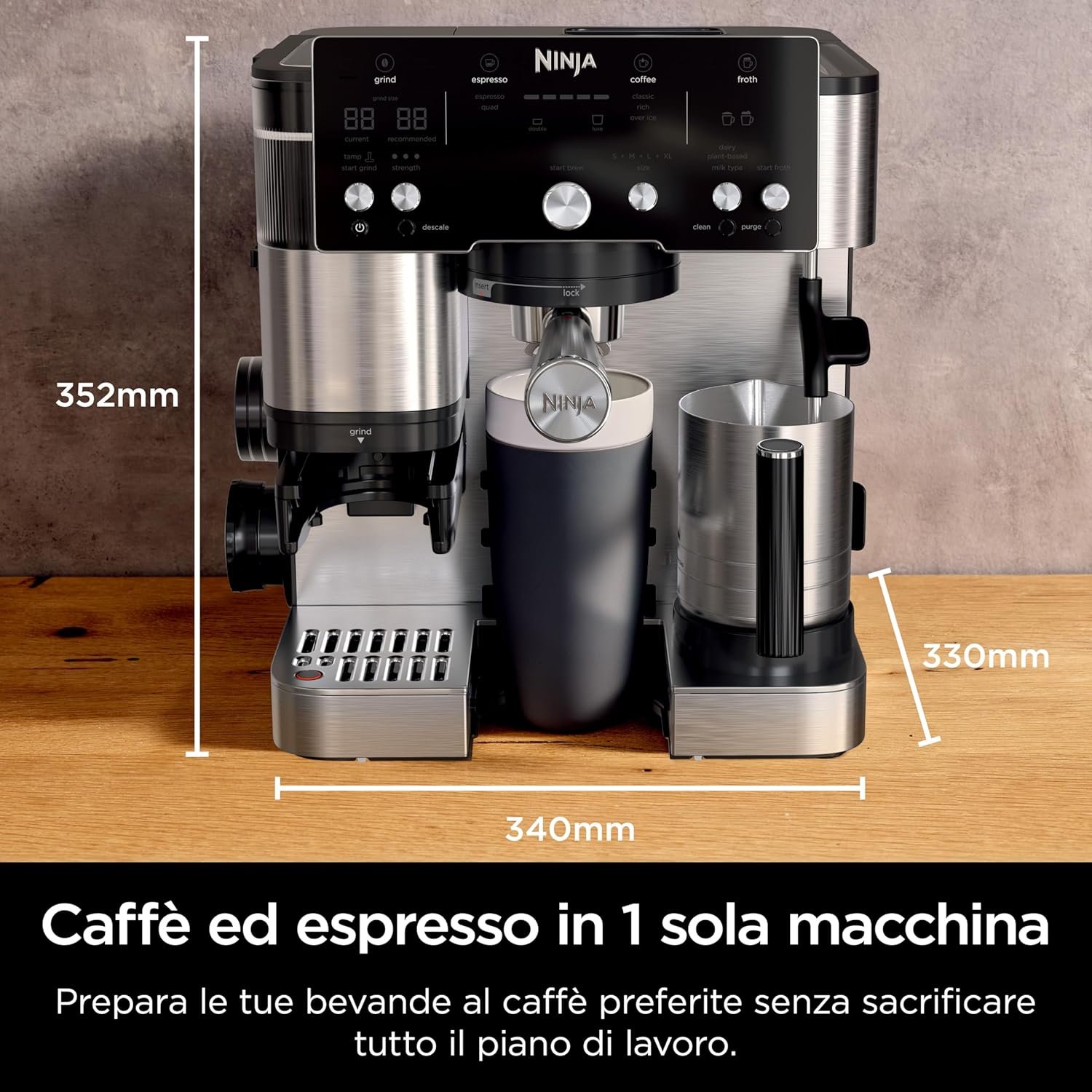 - 2 MACCHINE IN 1: Goditi i tuoi caffè preferiti comodamente a casa con questa macchina per espresso e caffè filtro, tutto in uno. Include anche un macinacaffè integrato, un montalatte e un portafiltro con cestelli Double e Luxe