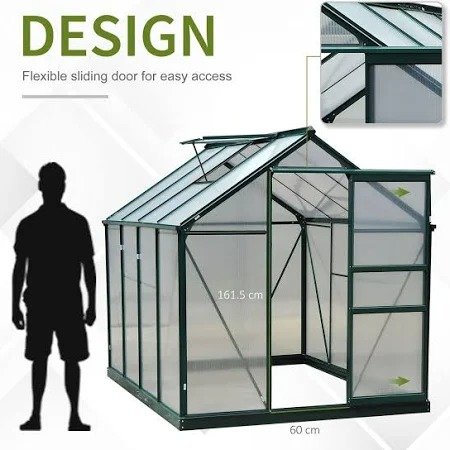 Start and continue the season right with this Outsunny 6ft x 8ft greenhouse. An open, walk-in design means it’s easy to enter and leave, whilst giving you the full free space to set it up how you want. A powder-coated aluminium frame means a strong structure, with four ground stakes included to pin to the ground. Features a sliding door for easy access in and out, with a lift-up roof which holds in place – it’s easy to let in fresh air, whenever you want. Features: Can hold up to 40kgm² of snow in winter