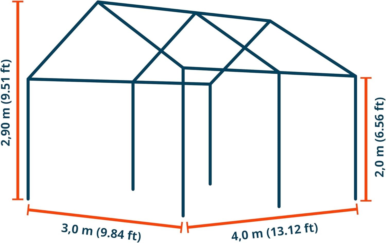 - Telone di alta qualità: i teloni sono realizzati in PVC e impermeabili. Il telo del tetto è realizzato in un unico pezzo ed è un elemento essenziale per la stabilità della struttura. Resistenza alla trazione dei teloni pari a 700 N.