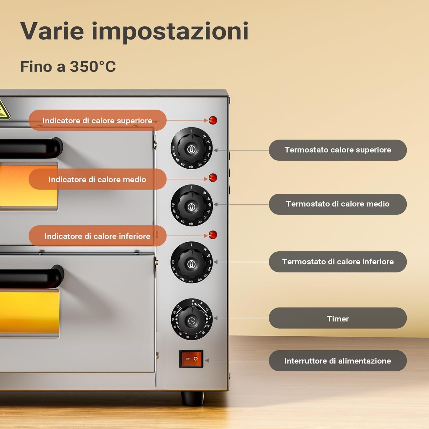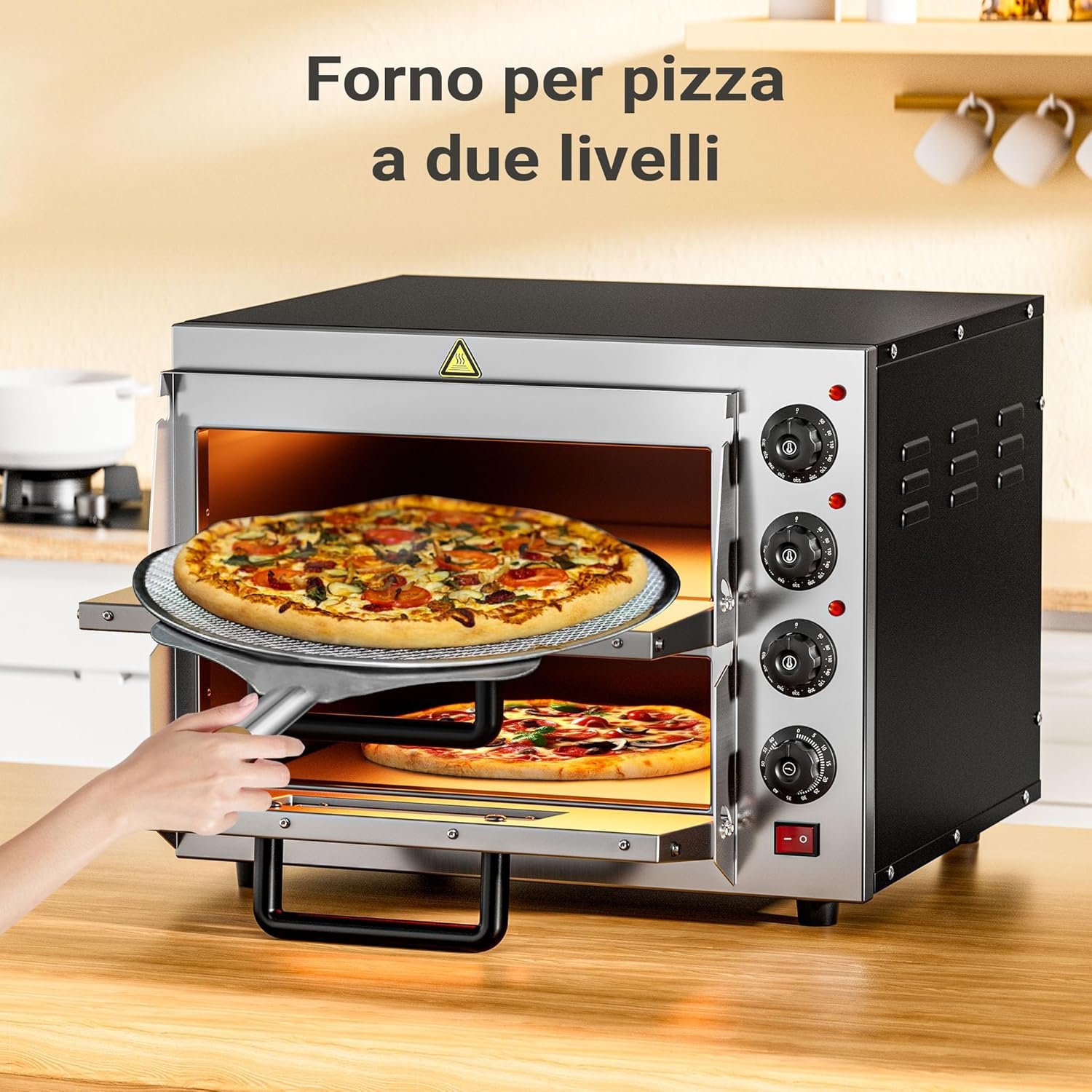 - [Fuzionalità ottimale] – Dotato di due camere di cottura, tre termostati e un timer, il fornetto permette di cucinare due pizze contemporaneamente con diverse impostazioni di cottura. Ideale per le serate in compagnia