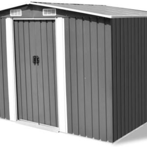 Il capanno da giardino in metallo grigio è una soluzione spaziosa e resistente per organizzare e proteggere attrezzi, biciclette e