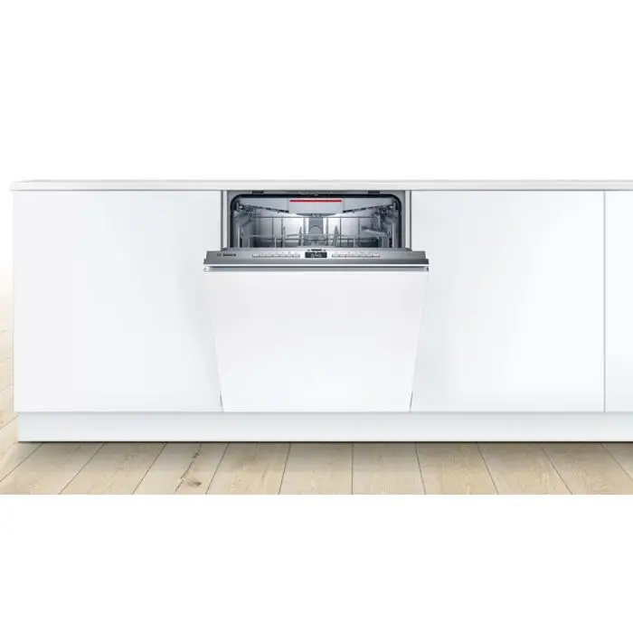 Lavastoviglie Bosch SMV4HVX31E incasso capacità 13 coperti classe energetica E progettata per garantire efficienza e comfort quotidiano, livello sonoro 46 dB ideale per funzionamento silenzioso, sei programmi di lavaggio con opzioni personalizzabili per ogni esigenza, motore EcoSilence Drive silenzioso ed efficiente con lunga durata, programma Eco 50°C ottimizzato per risparmio energetico e idrico, programma Intensivo 70°C per pentole e padelle molto sporche, programma Rapido per lavaggi veloci in poco tempo, funzione ExtraDry con asciugatura potenziata ideale per stoviglie in plastica, funzione SpeedPerfect+ per riduzione tempi mantenendo prestazioni elevate, sistema Home Connect con controllo remoto tramite smartphone e gestione intelligente lavaggi, compatibilità assistenti vocali per comando con voce, tre cestelli VarioFlex con disposizione flessibile e regolazioni intuitive, cestello superiore regolabile in altezza Rackmatic anche a pieno carico per ospitare piatti e bicchieri di dimensioni maggiori, terzo cestello dedicato a posate e utensili piccoli per maggiore spazio nei cestelli inferiori, interni in acciaio inox resistenti e facili da pulire, display LED chiaro con indicazione tempo residuo e impostazioni programma, partenza ritardata fino a 24 ore per pianificazione ottimale lavaggi, sistema AquaStop protezione totale da perdite d’acqua garantita a vita, design integrato con comandi nascosti sul bordo porta per estetica minimale ed elegante, dimensioni standard 60 cm compatibili con maggior parte cucine, efficienza affidabilità e tecnologia Bosch per uso familiare intensivo, soluzione ideale per chi cerca combinazione tra capacità , silenziosità , risparmio energetico e connettività intelligente.
