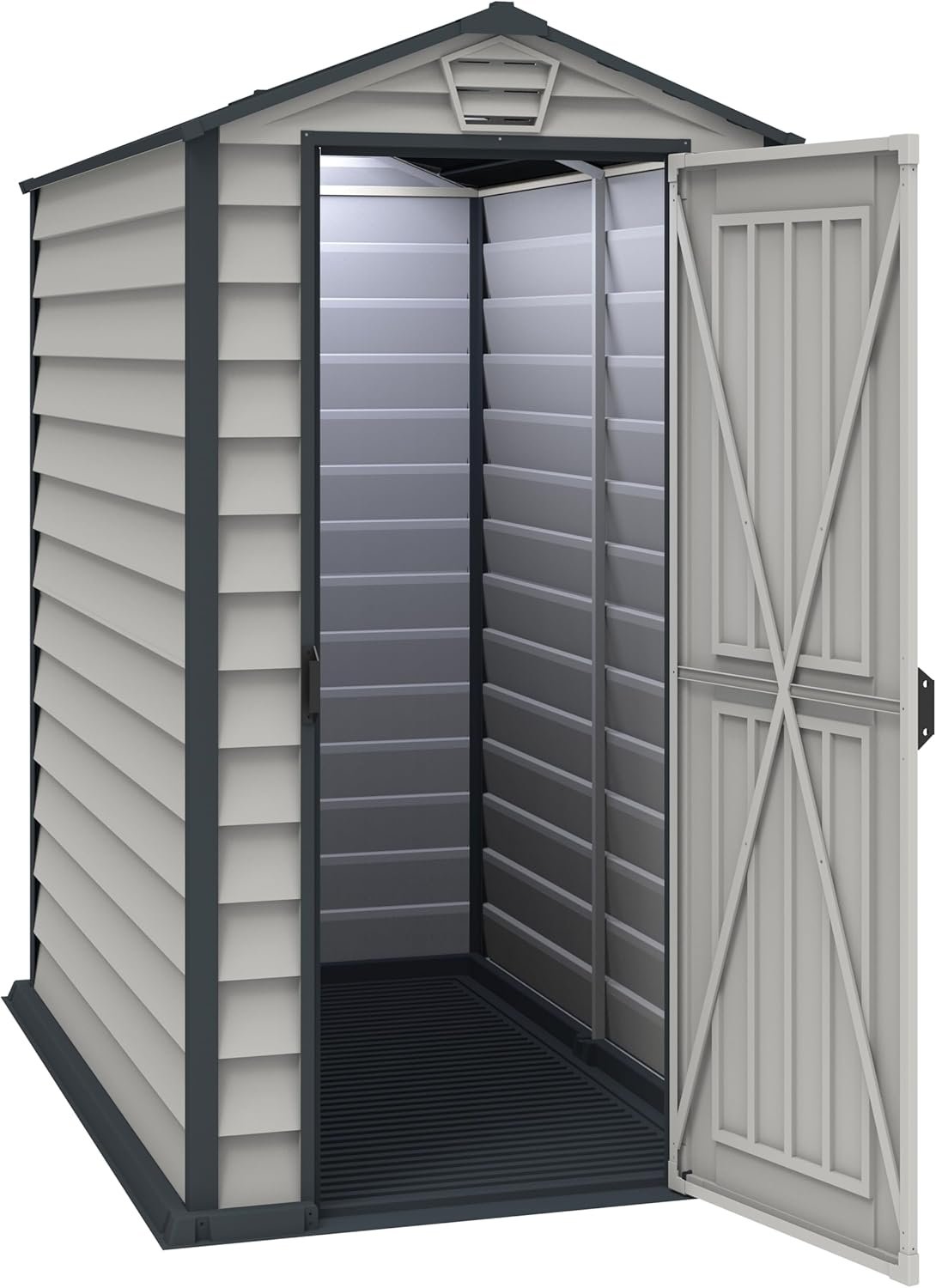 Duramax EverMore 4 x 6ft Plastic Garden Shed – Adobe & Grey – Fire Retardant & All Season Outdoor Storage Solution – Includes Plastic Floor, Dark Grey and Adobe