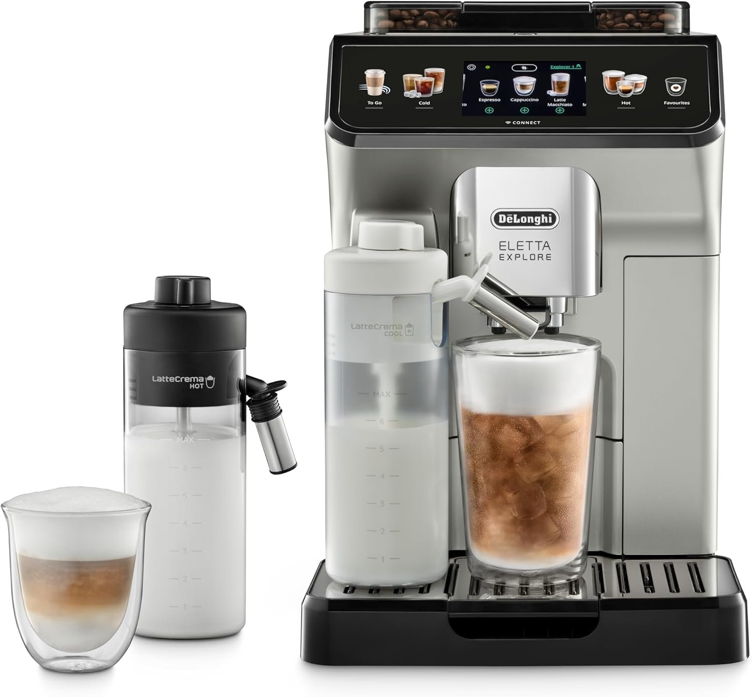 Con un solo tocco puoi preparare oltre 12 ricette, dal caffè espresso al cappuccino cremoso, fino al latte macchiato. Il sistema LatteCrema Hot assicura sempre una schiuma densa e vellutata. Inoltre, la macchina è dotata di programmi automatici di pulizia per garantire igiene e praticità quotidiana.