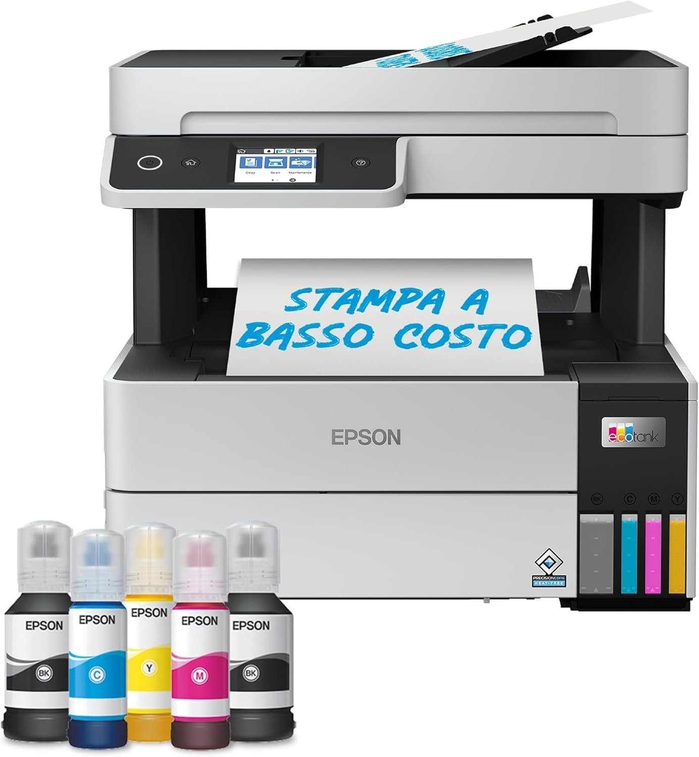 - Risparmio costante. Risparmia ogni volta che stampi con questo modello EcoTank e approfitta del suo costo per pagina incredibilmente basso. A differenza di altre stampanti, la gamma EcoTank offre serbatoi di inchiostro ad alta capacità, ricaricabili tramite flaconi pratici e convenienti.