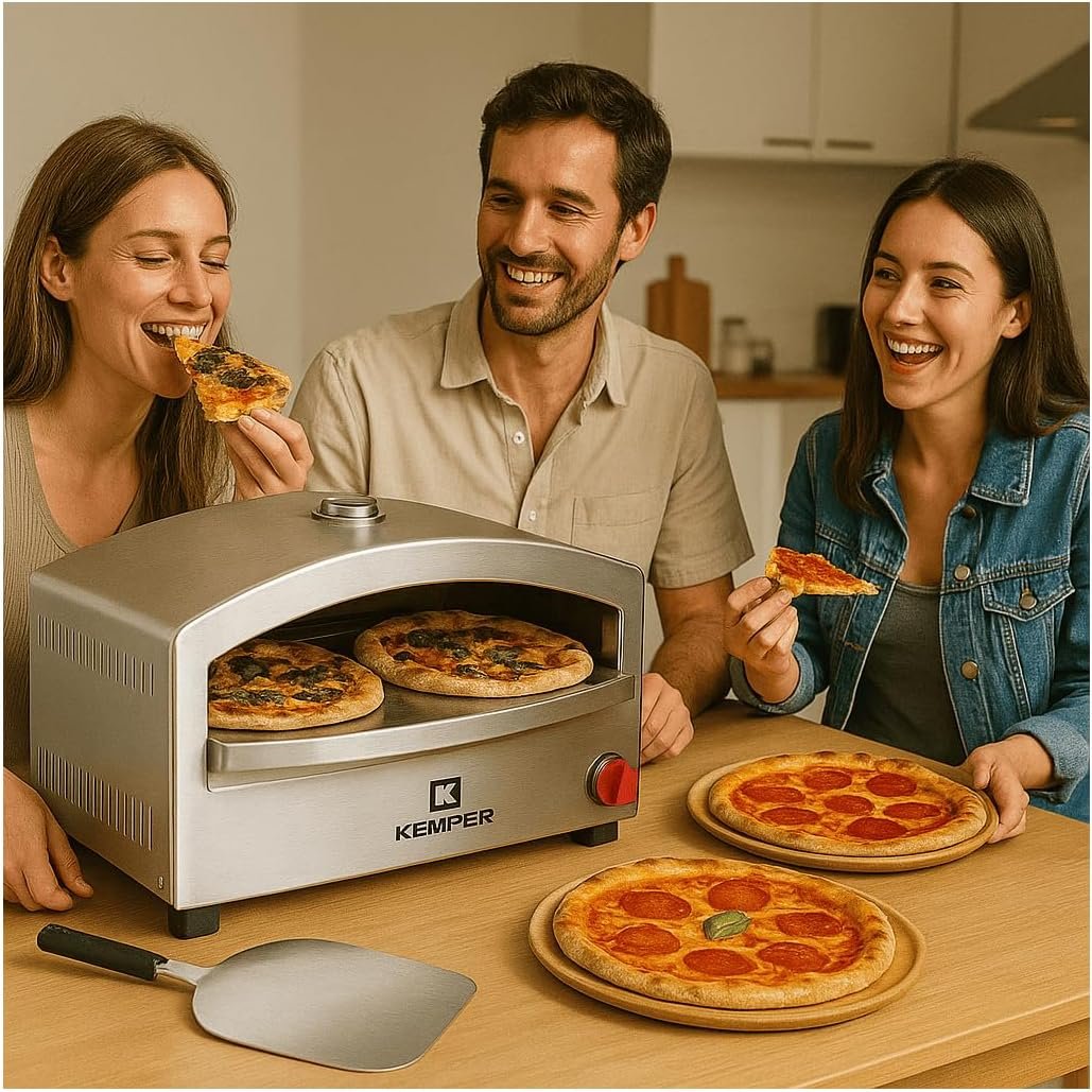 Il forno per pizza a gas KEMPER 4800W รจ la scelta ideale per chi cerca un elettrodomestico compatto, potente e affidabile per preparare pizze perfette in casa o allโaperto. Realizzato in acciaio inox resistente, รจ dotato di pietra refrattaria che garantisce una cottura uniforme e croccante, come in una vera pizzeria.