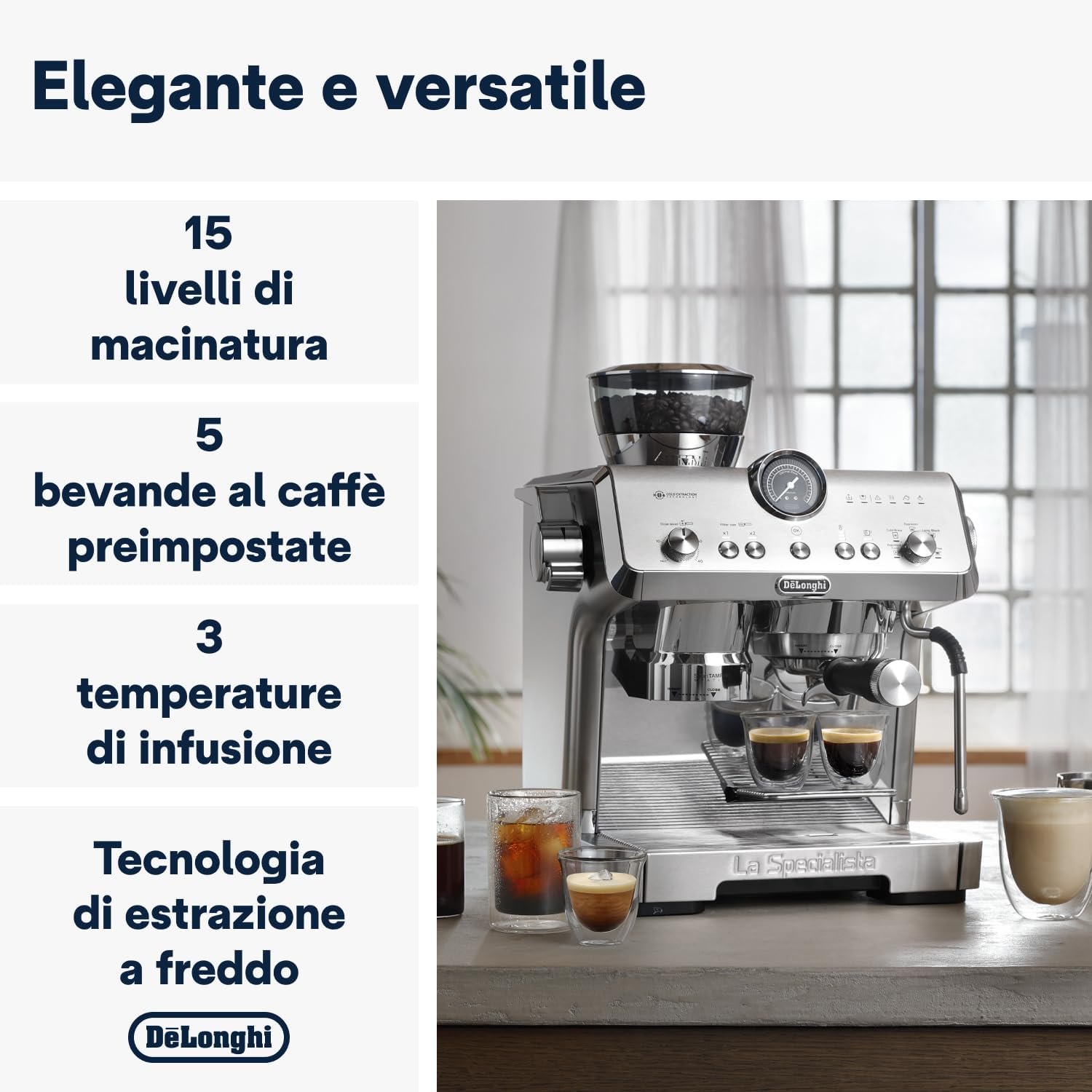 | Caratteristiche speciali | Macinacaffè integrato, funzione COLD BREW, e barra di vapore My Latte Art per fare schiuma manuale |