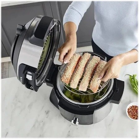 Create a perfect roast chicken in under 1 hour with Steam Roast. Cook family meals in under 30 minutes. Pressure Cook up to 70% faster than traditional cooking methods. Auto-Steam Release completes the cooking process, totally hands-free. Air Fry guilt-free fried food using little to no oil. Prove and bake delicious homemade bread in one pot.